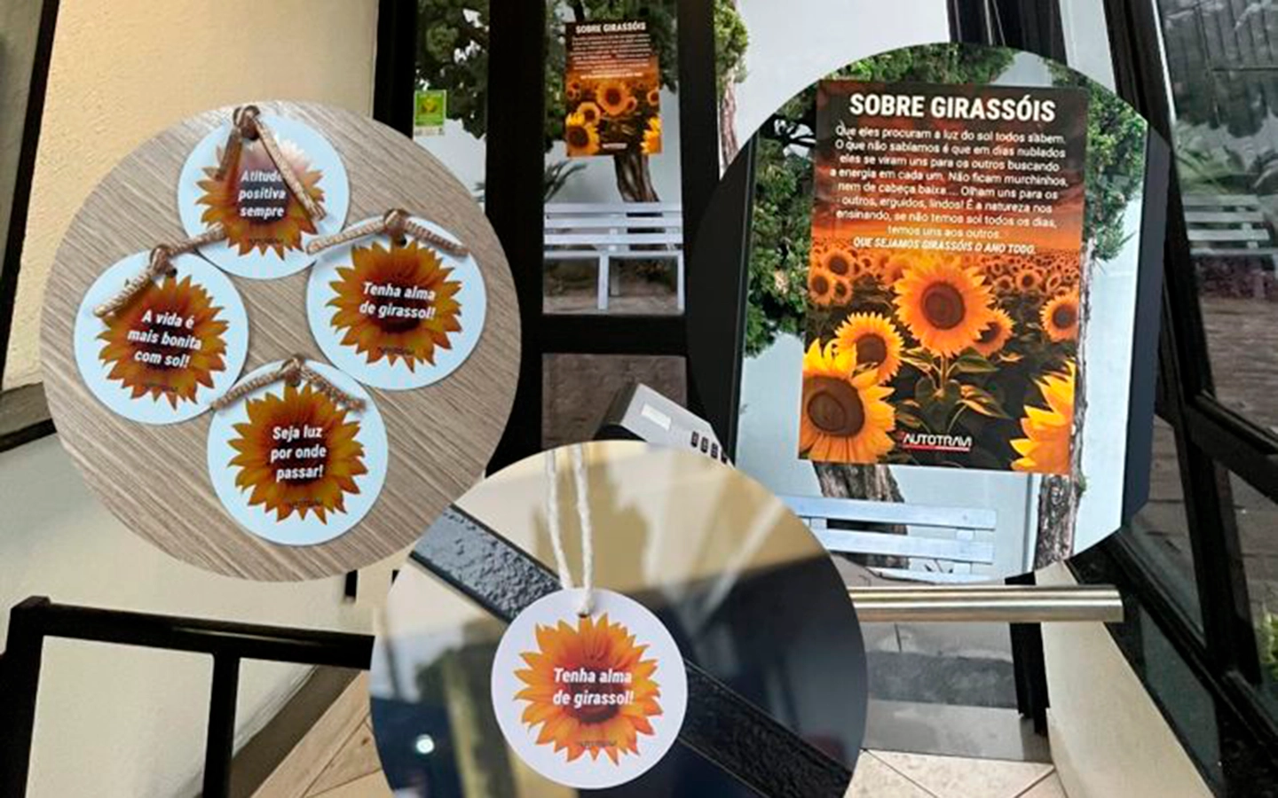 O programa Saúde + Autotravi, realizado em parceria com o Círculo Saúde, ganhou ações especiais durante o Setembro Amarelo, a campanha nacional pela prevenção do suicídio. Na terça-feira, dia 30 de setembro, as atividades se encerraram com a distribuição de sementes de girassol para os participantes, para que eles possam “plantar luz”. "Usamos o girassol como símbolo porque ele busca a luz e, quando não encontra, se vira para outros girassóis em busca de apoio. Essa analogia tem muito a ver com o que vivemos todos os dias: nem sempre o sol aparece, mas podemos nos apoiar uns nos outros”, explica a coordenadora de Pessoas e Cultura e SSMA da Autotravi, Gabriela Trapp,